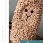 Add the face before continuing on. I just used black yarn and tied it securely in the back before weaving in ends.ย Cut two small black felt circles for eyes. Use glue to secure.