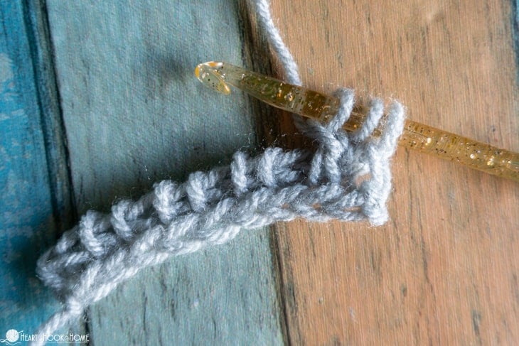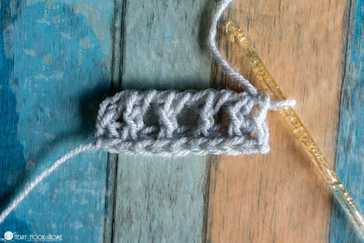 Tunisian mesh typically has a chain one in between each post or column, but with this variation we are omitting that chain to create a bit more sturdy fabric. This is great for shawls, or wraps, or scarves, as I am using in my Seattle Scarf pattern here.