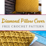Have you been looking for a crocheted pillow cover that will make a statement piece? One that has texture and will amaze your guests when you tell them that you made it? Well my friend, you are in luck! Make this new and free Pillow Cover crochet pattern featuring the Diamond Stitch. I absolutely love the little diamonds that this stitch makes and I know you will too!
