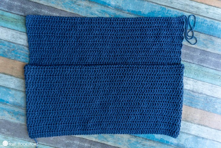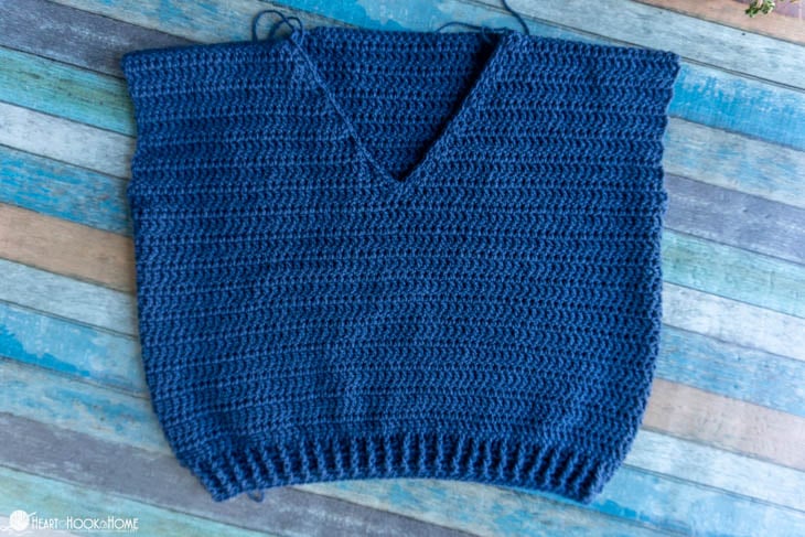 We are using the double crochet stitch, which is a basic crochet stitch that works up quickly. If this will be your first crochet garment from a pattern, this is a great one! There is minimal shaping, very little seaming or sewing, and the sleeves are easy peasy!