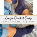 Do you love socks? Do you love to crochet socks? If so, you are in for a treat! This is the first pattern included in “Sock Week”, a pattern collection including FIVE sock and slipper patterns with a bonus Tunisian crochet pattern. You’re going to love it. Grab your hook and let’s whip up a pair of simple, streamlined single crochet socks using this free crochet pattern!