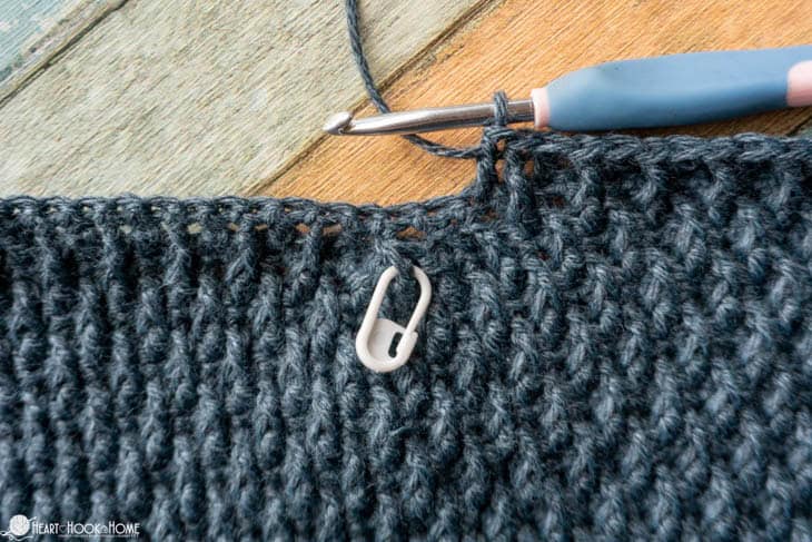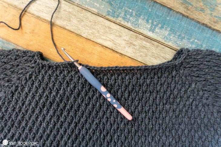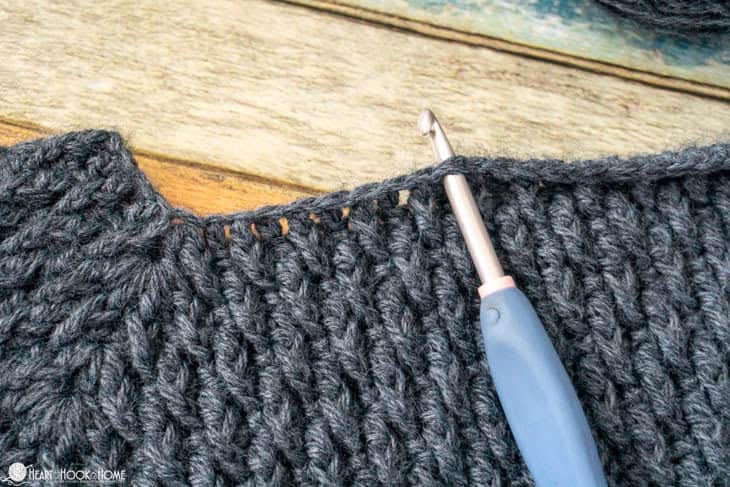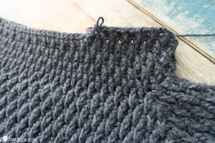 Note: the armhole round is a single crochet round with the stitches worked from marked stitch to marked stitch.