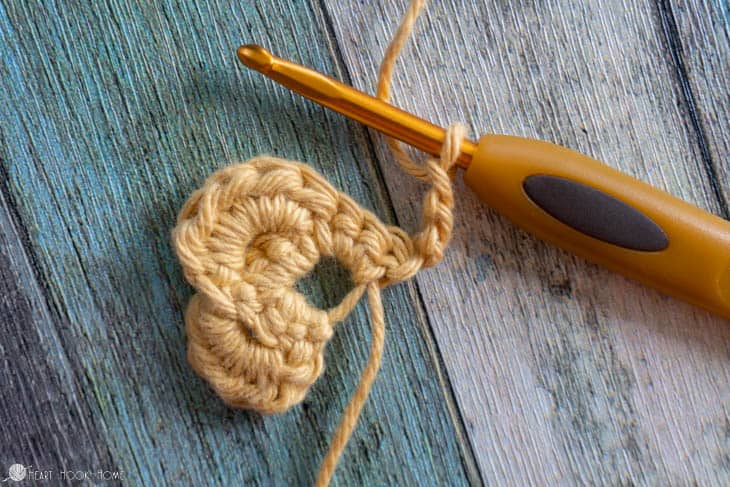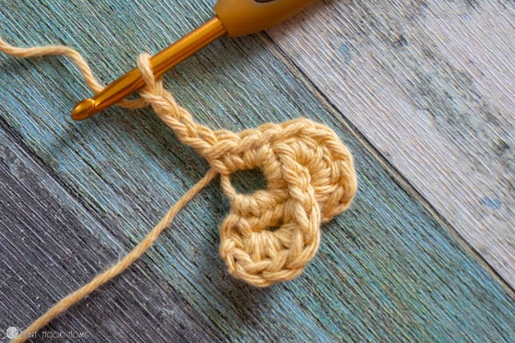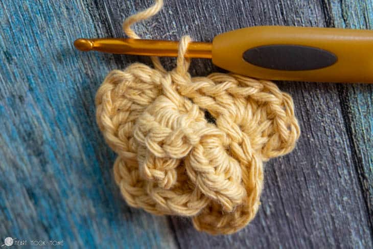 Note! I find it helpful to mark the first petal of this row (and any other rows, if you choose to continue to grow your flower) with a stitch marker.