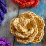 The pattern below is for the smaller (yellow) flower. If you would like a larger flower simply continue adding petals, and more frequently per row. Once you get the hang of adding the new petals, the rest is a breeze!