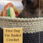 This dog toy basket pattern is the newest installment of the 2024 Dog Crochet Series. This is a year-long series during which I design one new crochet pattern per month relating to pets. Check out all of the other dog series patterns and posts at this page. There are some great ones so far!