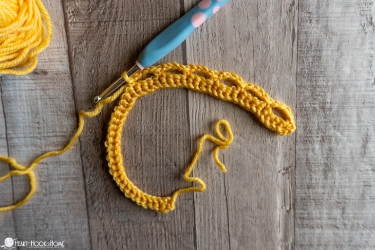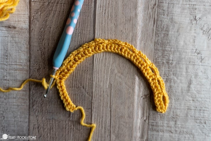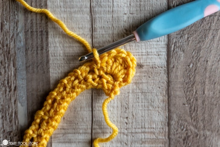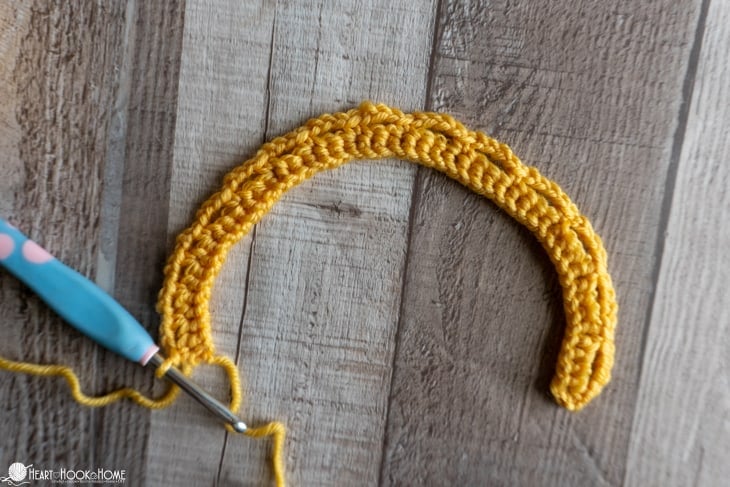 Round 7: Hdc in third loop only of next 18 sts. (18 sts – a partial round)