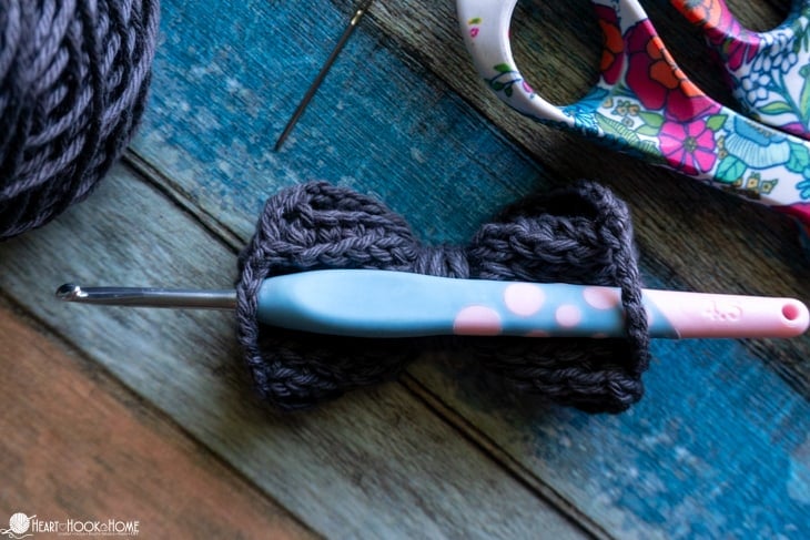 How adorable is that little bow tie?! To make it slightly wider, I suggest starting with 40 or 50 chains instead.