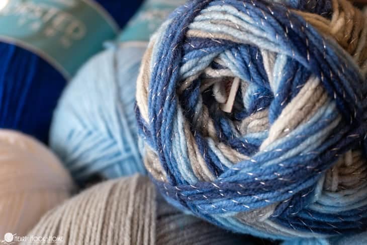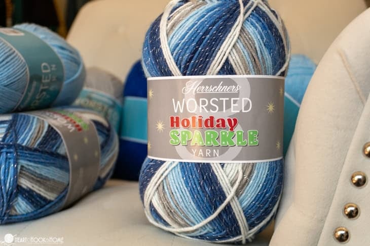 (3) Herrschners Holiday Sparkle skeins (“Frosty” pictured)