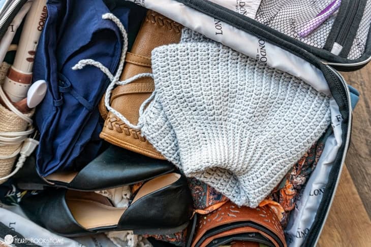 Follow this crochet pattern to make a flat travel pillow that you can stuff using some of your clothing to open up more space in your luggage for the trip home. Find the free version of this pattern here.