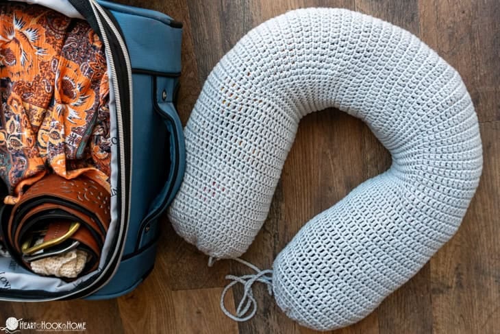 This stuffable, space saving travel pillow crochet pattern is the perfect thing for the person in your life that consistently overpacks.