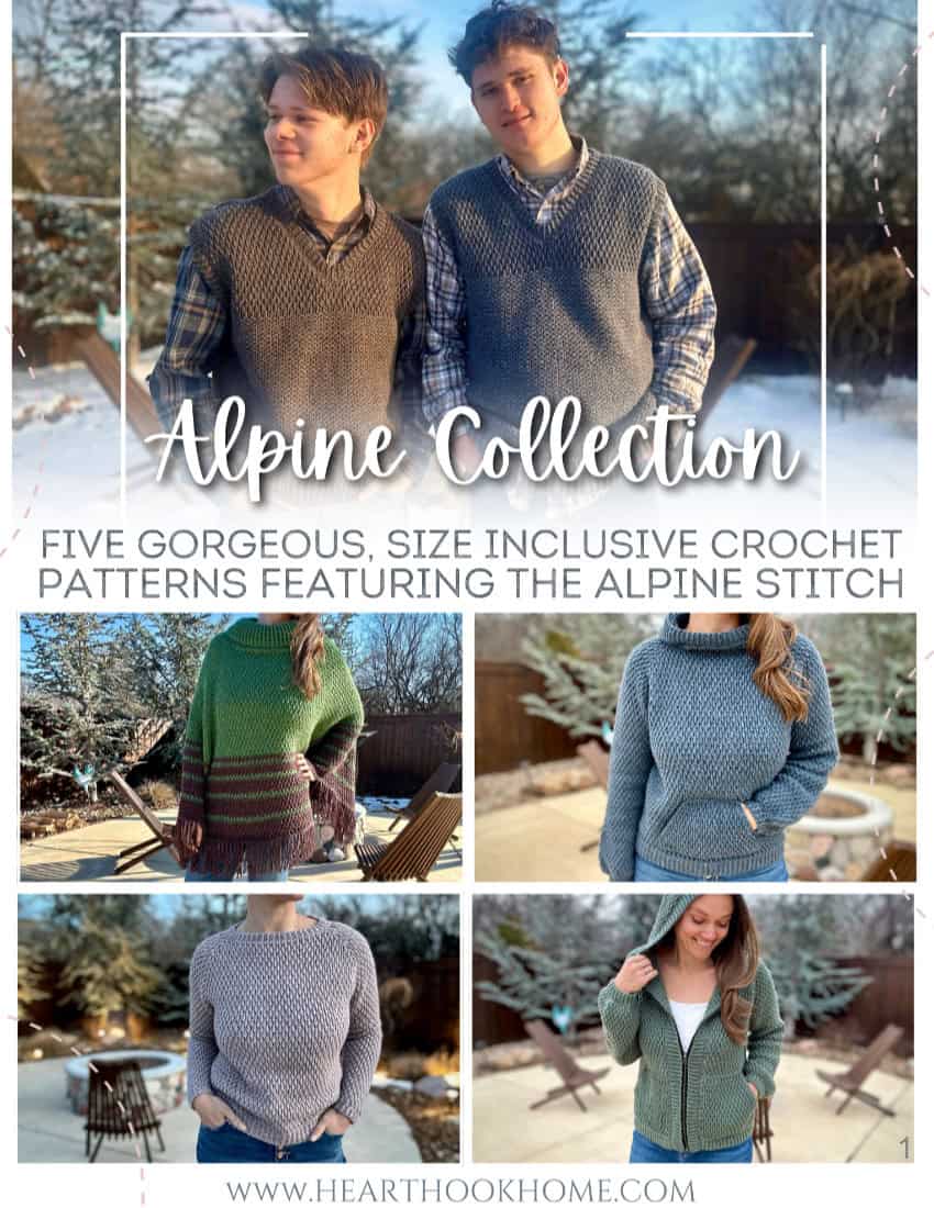 The Alpine Collection is a set of five garment designs all featuring the Alpine Stitch. This is a stunning crochet stitch that gives great texture and makes for a plush, luxurious fabric.