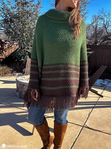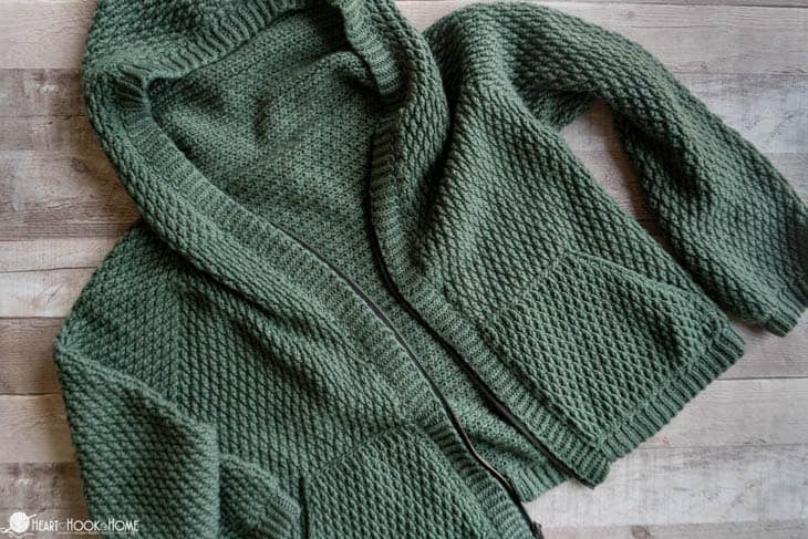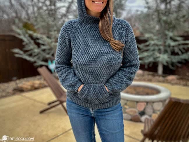 Included in the 99-page eBook are FIVE size-inclusive designs including a poncho, a hoodie, a sweater, a cardigan, and a sweater vest. There are two different options for the sleeves – a tapered sleeve as shown in the sweater or a straight sleeve as shown in the hoodie and the cardigan. All sleeve patterns are interchangeable between designs. Don’t want the tapered sleeves as pictured on the sweater? Use the straight sleeves from the hoodie instead!