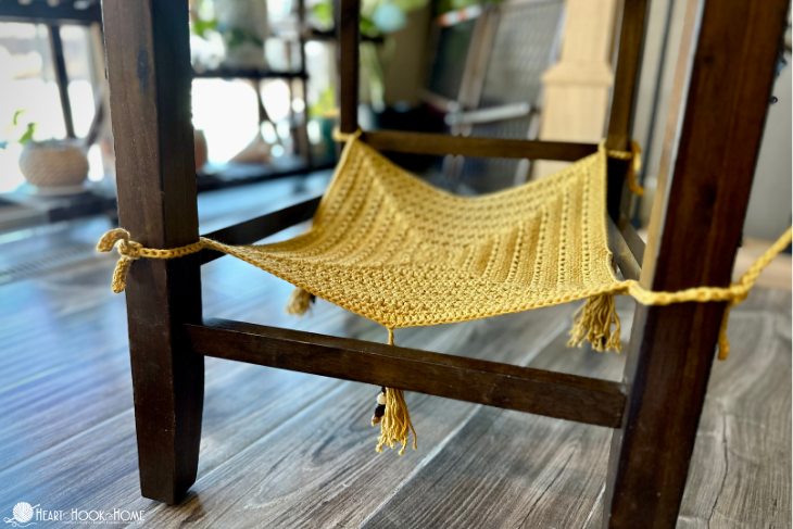 This clever and cute Kitchen Chair Cat Hammock is sure to be your kitty’s favorite place to chill. Tie to any kitchen chair that has crossbars to help support it.ย