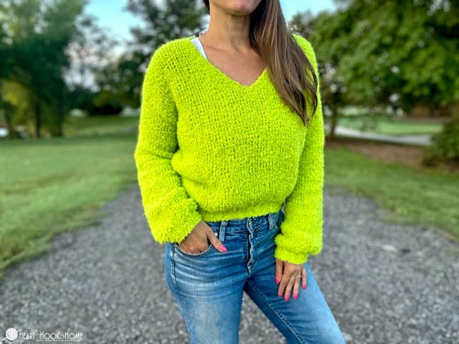 We use the Tunisian Knit Stitch to create this sweater. The TKS is a beginner-friendly Tunisian stitch so this makes for an excellent first Tunisian wearable!