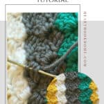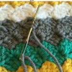 If possible, when changing to a different color yarn or starting a new yarn skein, hold the yarn tail flat on top of the previous row and crochet AROUND that strand, helping to “pin” the tail to the new row so that part of the weaving is already done. (see photo above)