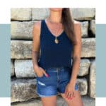 I have been itching to design a simple v-neck style tank top and I am so happy with how this turned out. What I love most about this tank top pattern is that you do not have to wear an additional tank top underneath. It’s too hot for that!