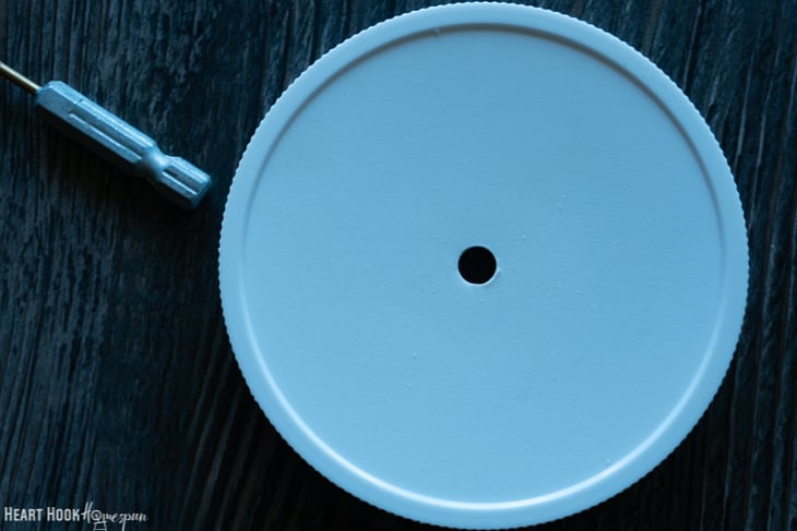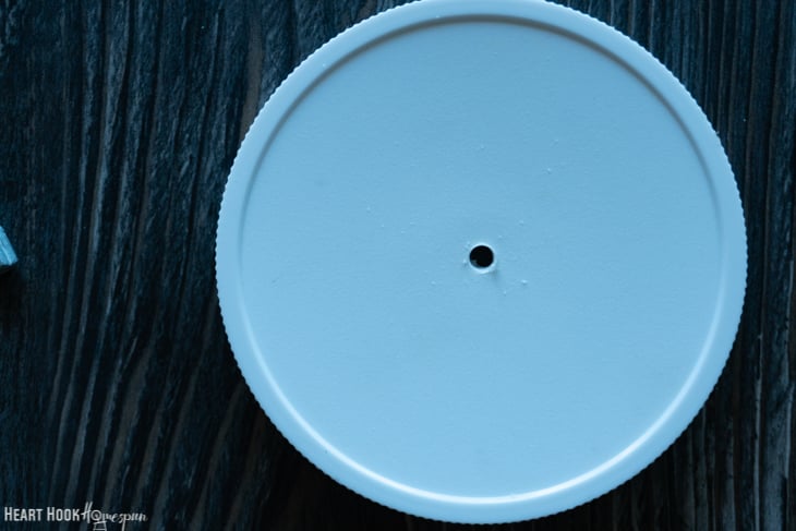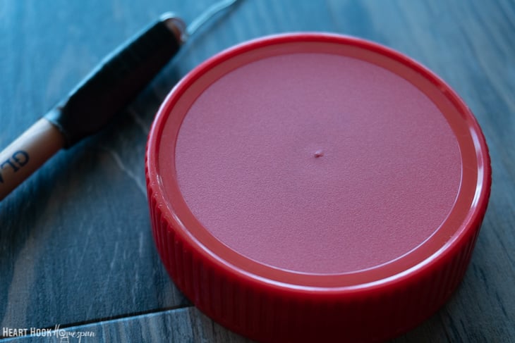 The whorl can be anything from a piece of cut-out cardboard, to a CD, to the jar off of a seasoning in your cupboard. Note that most drop spindles have a notch in the whorl, so finding something grooved would be advantageous! Here are some great options I found in my pantry. The optimum width is anywhere between 2.5″ to 3.5″ diameter.