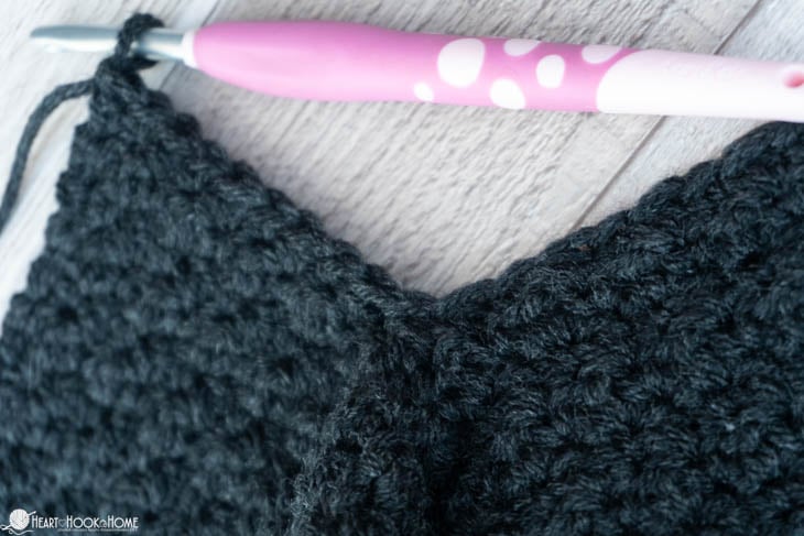 Fasten off leaving a long enough tail for seaming hood shut. Fold hood in half and sew stitch for stitch using your preferred method.