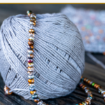 Note! It may be beneficial to make sure your yarn has no factory knots before stringing all of your beads. If you encounter a knot, you’ll have to remove all of the beads, clip the knot, and restring before continuing on.