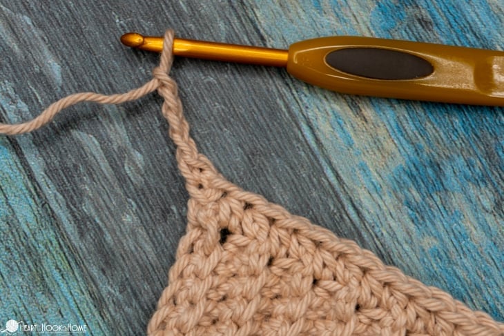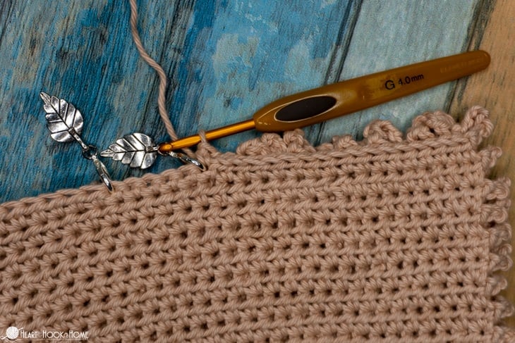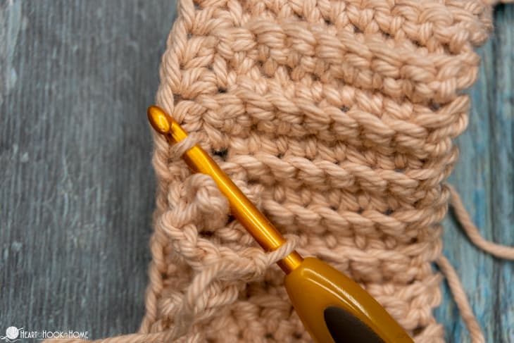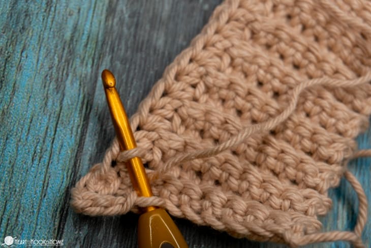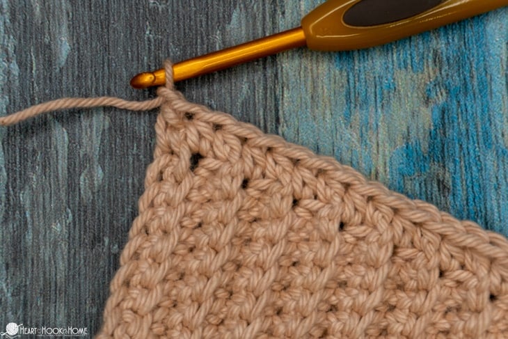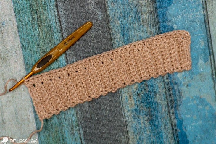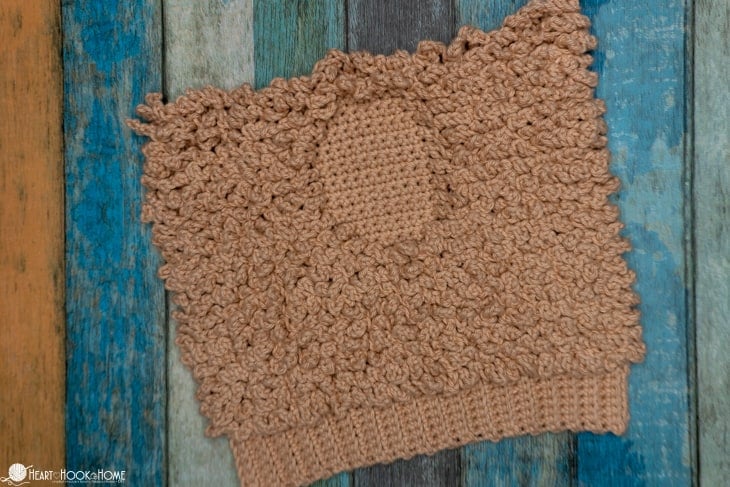 The Half Double Crochet portion is always worked as normal crochet. The โfurโ (sc, ch-4) is worked in reverse (starting at the left edge working to the right of the hdc row).