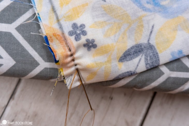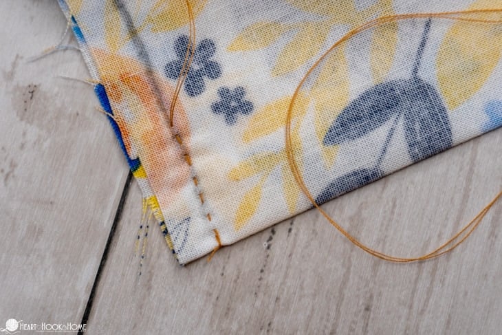 Next youโll want to sew up the sides of the lining. To make sure I’m sewing as straight as possible, I trace a straight line with a pencil, then simply follow that line like so: