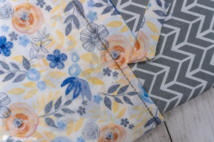Also make sure that the fabric is not puckering anywhere along the way. You can always re-pin the pieces together, and it would be a royal pain to rip out your sewing after the fact, so take your time on this part! Once pinned, you are ready to sew.