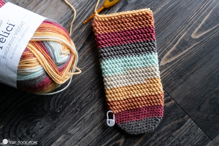 These toe-up, short row heel socks are crocheted using the Herringbone Half Double Crochet stitch. If you need a tutorial for that, make sure you check out this post. If this is your first foray into crocheting short row socks, I highly recommend following along with the beginner-friendly Toe-Tally Easy Sock VIDEO tutorial.