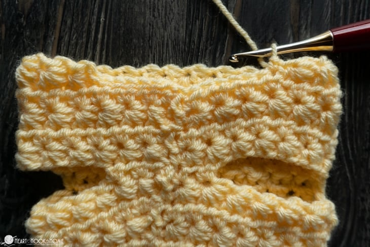 Gauge: 7 star sts x 5 full star st rows (including the hdc rows) = 4โ square