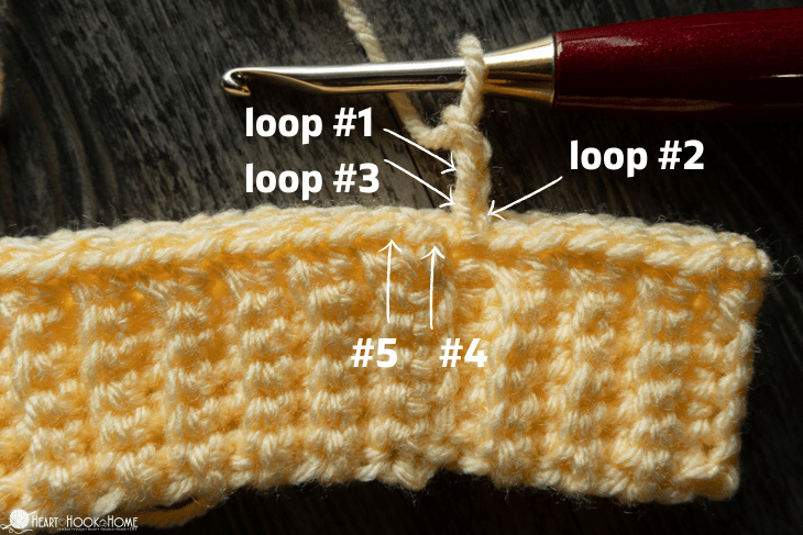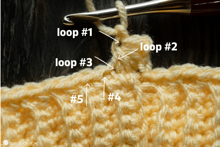 To start the star stitch rows, ch-3, pull up five loops total so that you have six loops on the hook. A loop in the 2nd chain from the hook, front loop of the 3rd chain, then pull up a loop in the back loop of 3rd chain, then first two stitches of the row as pictured below.