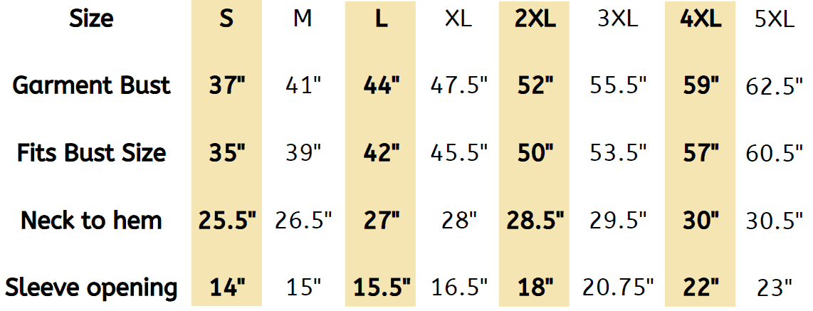 Pattern Sizes – (S, M, L, XL, 2XL, 3XL, 4XL, 5XL)