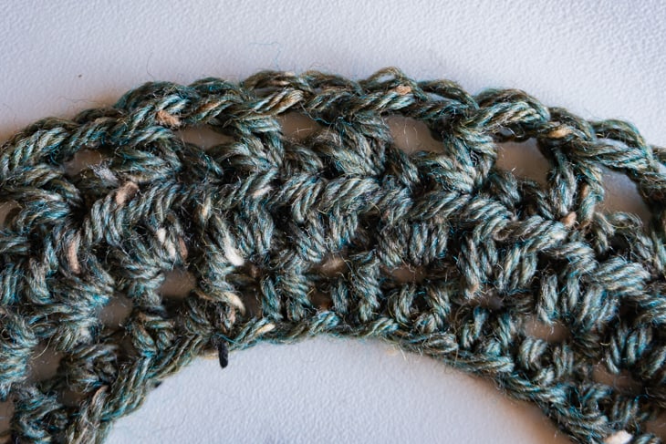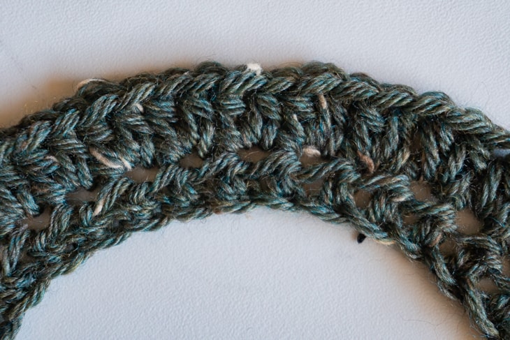 IMPORTANT! The beginning of the cape will curl/ripple and may appear too tight. If on gauge, and the initial chain is loose, this should resolve itself.