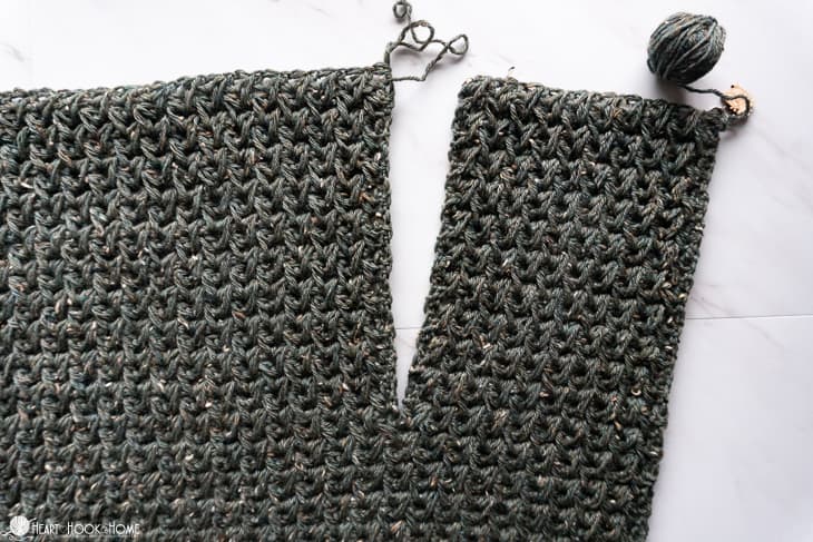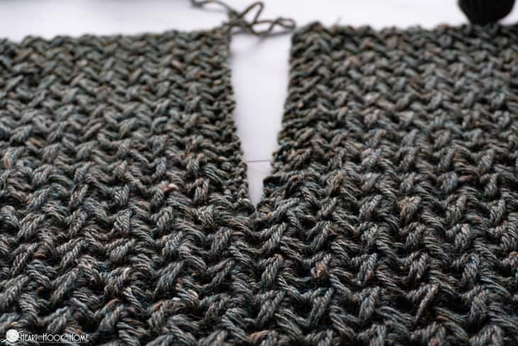 If you DID add a hood: skip โleft edgingโ below and jump straight to โright edgingโ. Instead of stopping at the neck, continue edging all the way up the hood and then down the other side to the opposite hem line.