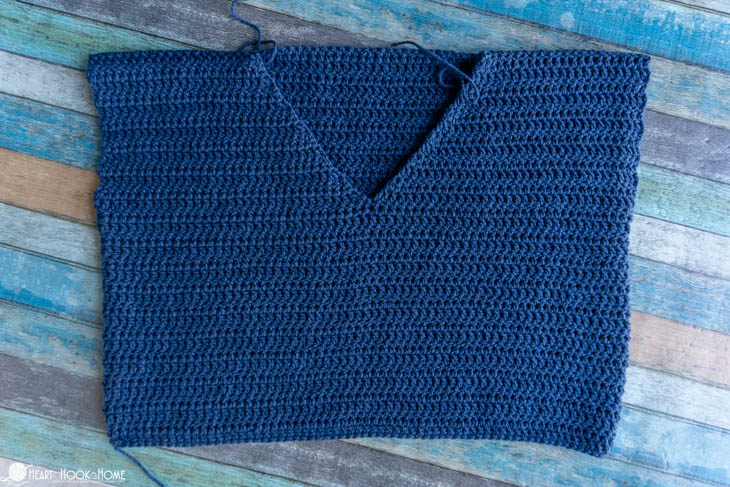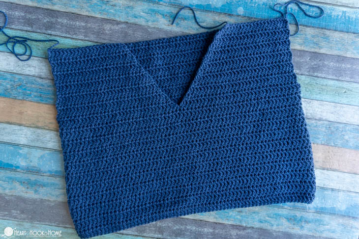 We are using the double crochet stitch, which is a basic crochet stitch that works up quickly. If this will be your first crochet garment from a pattern, this is a great one! There is minimal shaping, very little seaming or sewing, and the sleeves are easy peasy!