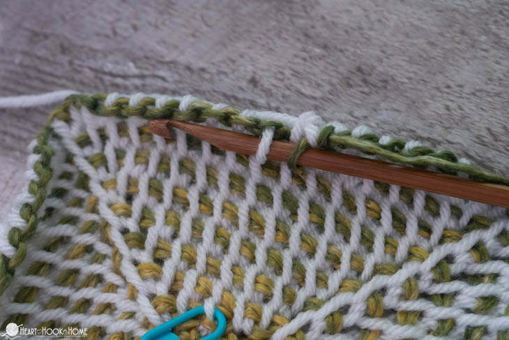 If you are not brand new to Tunisian Crochet but could use some brushing up or would like to further your skills, I encourage you to sign up for the free 6-week long Advanced Tunisian Crochet Along. There you’ll learn how to Tunisian Crochet in the round, how to fix dropped stitches both worked flat AND in the round, changing colors, increasing and decreasing, and more. Whew!