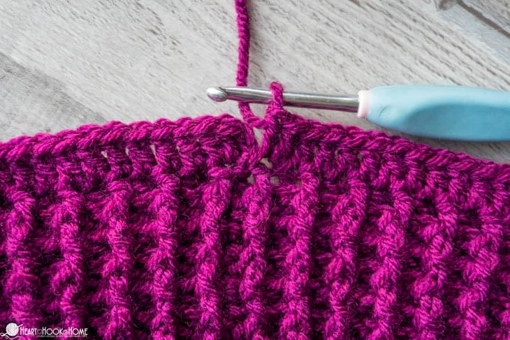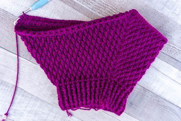 For the collar of the poncho we use Front Post/Back Post stitches. There is a tutorial for this technique here.