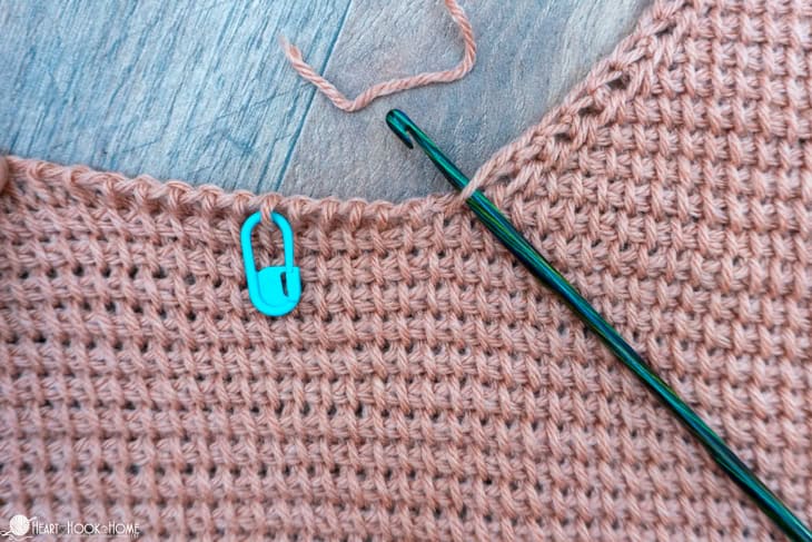 Attach in next open vertical bar/stitch on row (45, 47, 51, 51, 55, 55, 55) to start the other half of the โfrontโ…