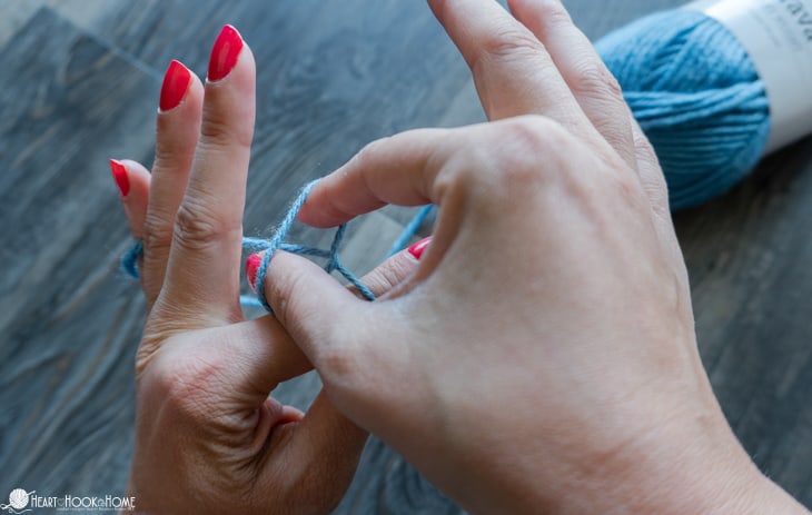 1. With the tail of the yarn to your left, and the “working yarn” to your right, form a loop over your index finger.