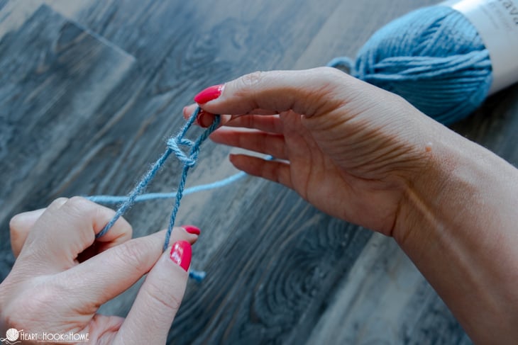 With a flick of the wrist, you’ll have a loop that can be tightened or loosened to accommodate the size of your specific crochet hook or knitting needle. If you need to start a project completely over, this knot will – quite literally – slip apart if pulled on both ends leaving you once again with a fresh bit of yarn.