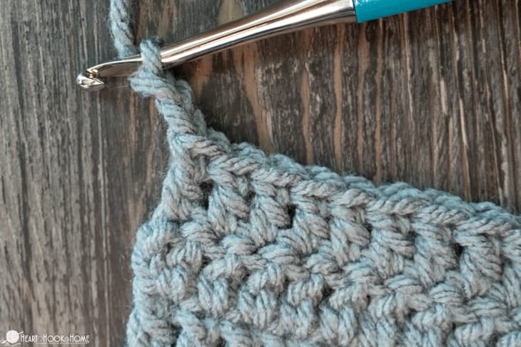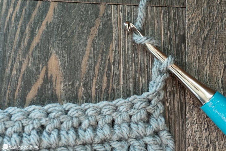 Remember that the double crochet is the height of two stitches, just like the single crochet is the height of one stitch and the triple is the height of three. When starting a new double crochet row, you’ll want to chain two to get the height needed to start that new row.