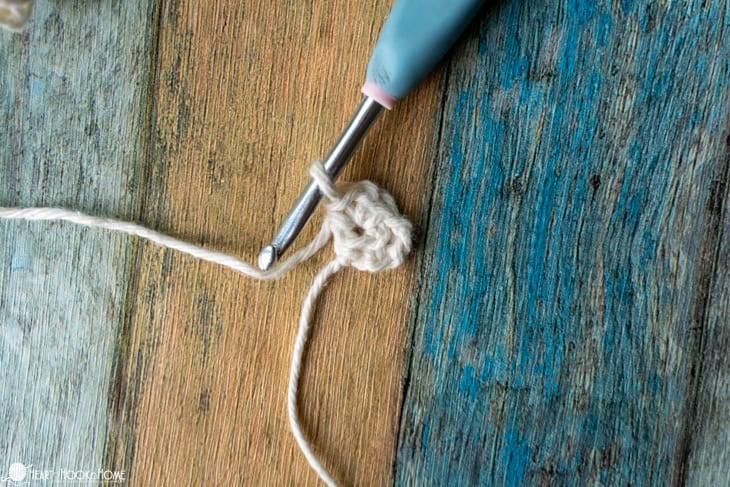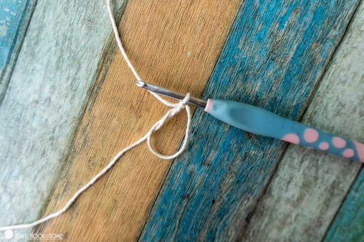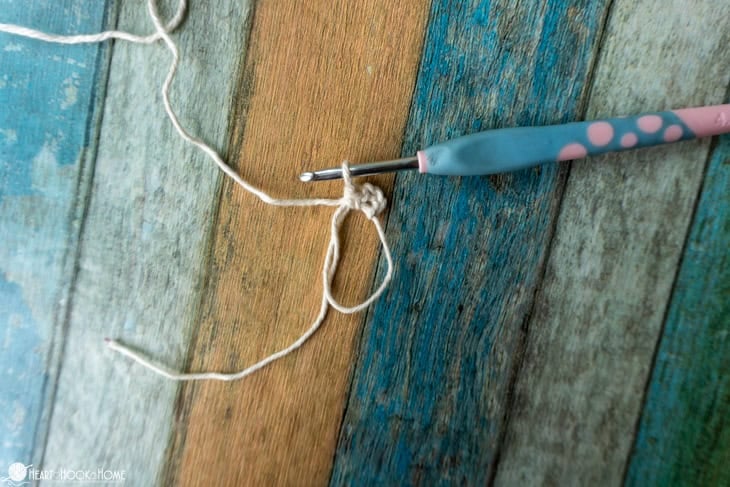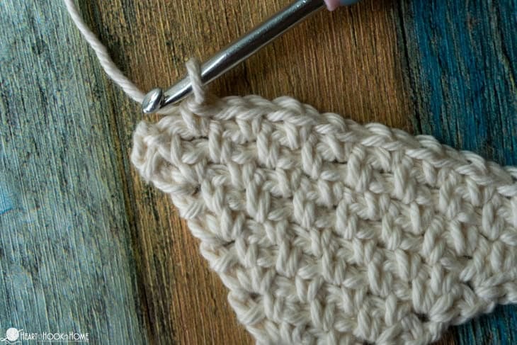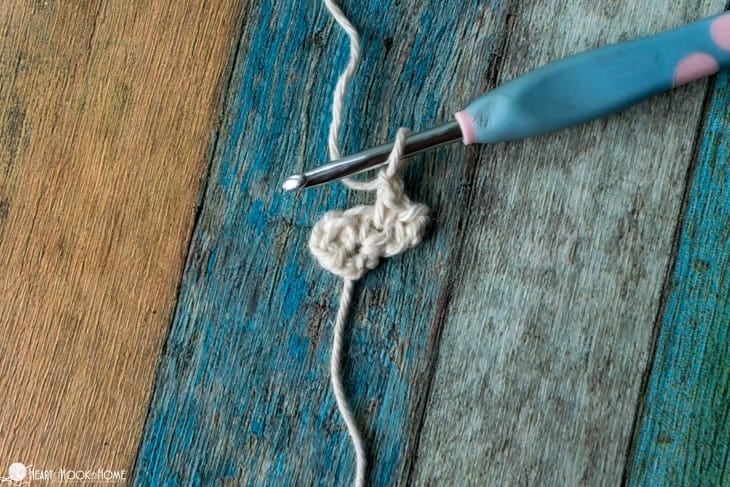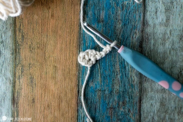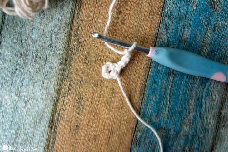 7. Chain one and turn, sc in the beginning chain of the previous row.