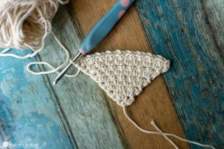 If you are familiar with the C2C technique, you know that part of the beauty of this method is that you start at one corner, growing both sides like a triangle. When the triangle gets as large as you want, its time to start decreasing for the other half.