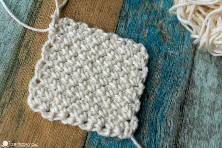 The Moss Stitch is made using a combination of single crochet stitches and chains. We offset each row so that the single crochets always go into the chain spaces from the previous row. For the C2C method, and because we are starting at the corner and growing on both sides, there is no multiple needed in order to start.