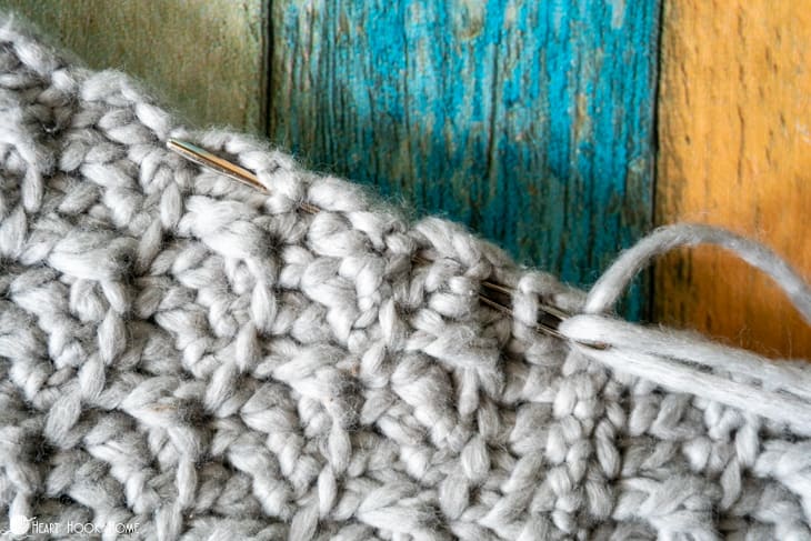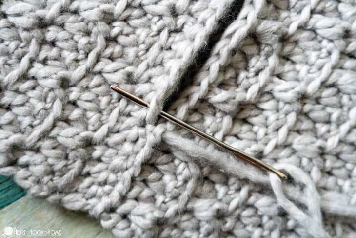 Line up first row to last row and sew using the Mattress Stitch. (You can also slip stitch the ends together, but I think Mattress Stitch looks cleaner).