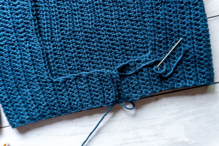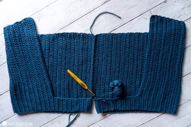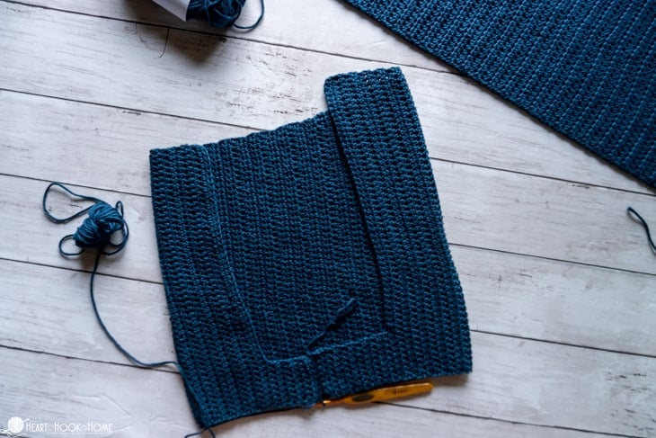 When you reach the crotch, be liberal with your stitches. Before starting on the second side line up the remaining sts so youโre not left with any extra when you get to the top. When finished, do not fasten off.