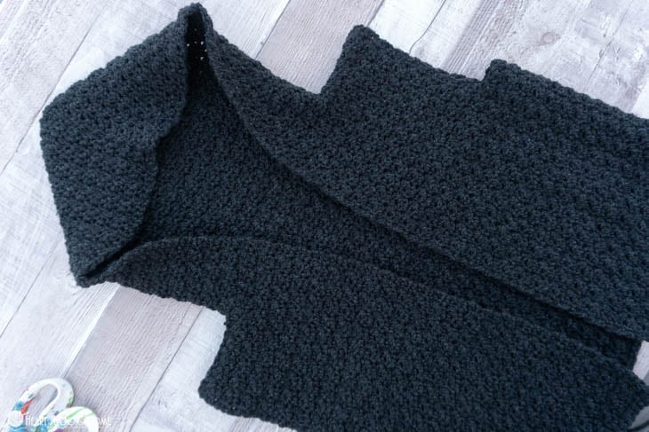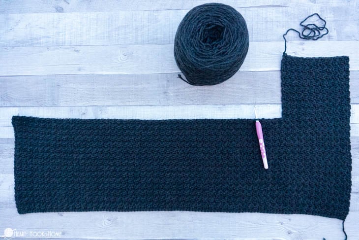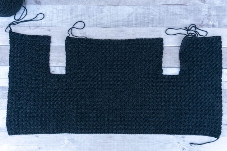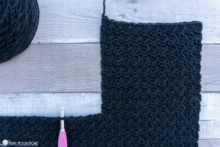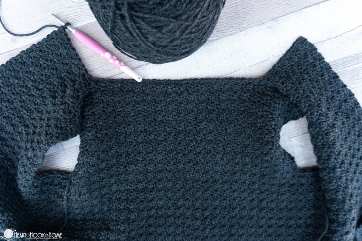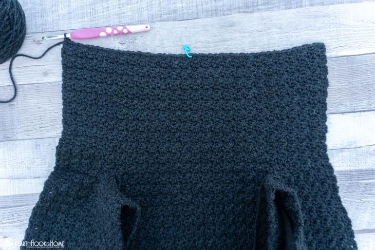 Do not fasten off. Mark with st marker as we will pick back up using this yarn to make the hood after construction.
