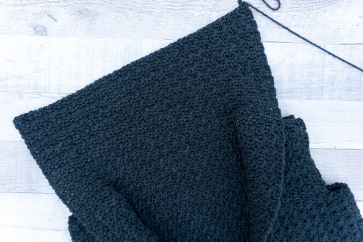 Fasten off leaving a long enough tail for seaming hood shut. Fold hood in half and sew stitch for stitch using your preferred method.