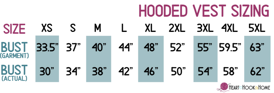 This hooded layering vest is so simple and very easy to work up. No sleeves means that we are finished with the design before you know it! This layering vest pattern is size inclusive with sizes ranging from XS through 5XL.