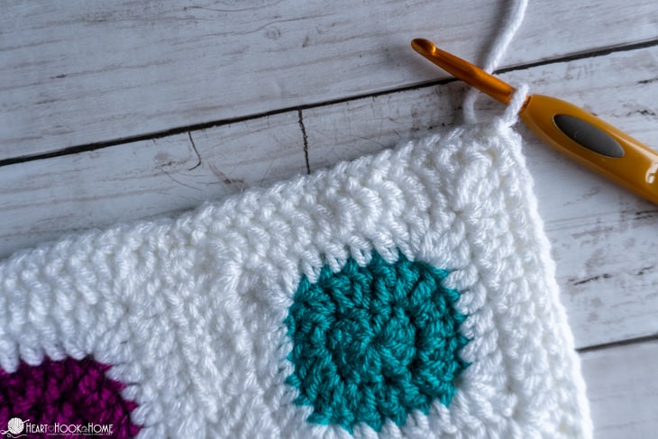 Sc 14 sts across each square around entire rectangle, placing 3sc in each corner st. Join to top of first sc. Do NOT fasten off.